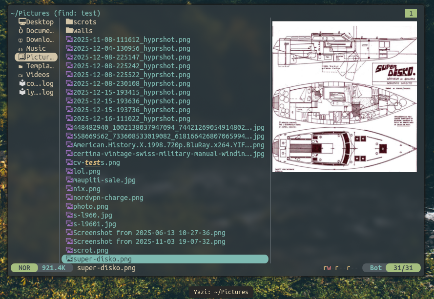 Recently switched to Yazi as my file manager from LF because it has features built in aside from just seeing the names of files and out of the box the image previews work in Kitty? Never had that before so I’m stickin with it.