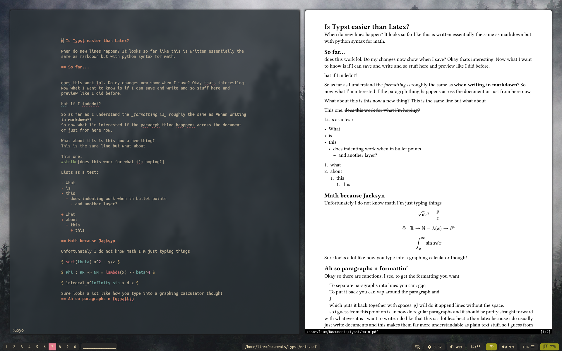 - PDFs: Zathura, is there any other way honestly? Works well with Typst live previewing